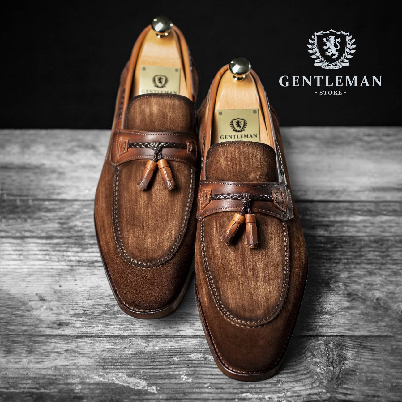 Luksuzne smeđe mokasin cipele sa brušenom kožom i blago zatamnjenom krajnjom linijom cipele. Ručna izrada brenda Gentleman Shoes.